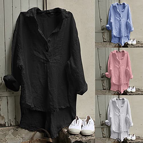 BIBOKAOKE Camicia casual da donna, a maniche lunghe, con scollo a V, camicia a maniche lunghe, asimmetrica, maglione, tuniche, tinta unita Blau17 XL