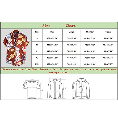 BIBOKAOKE Camicia da uomo hawaiana a maniche corte con risvolto, basic, slim fit, casual, estiva, alla moda, a maniche corte, Rosso 4, S