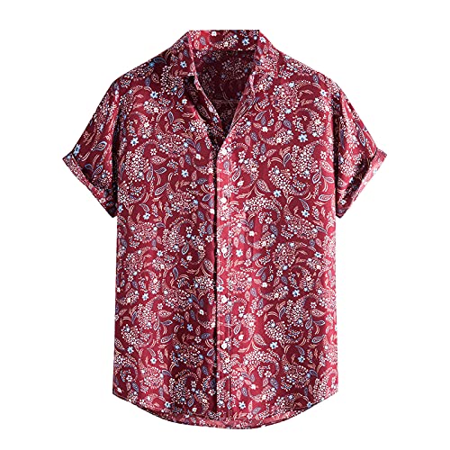 BIBOKAOKE Camicia da uomo a maniche corte Hawaii, con stampa floreale, estiva, casual, Henley, per la spiaggia, per le vacanze, per il tempo libero, da uomo, a maniche corte Rot12. M