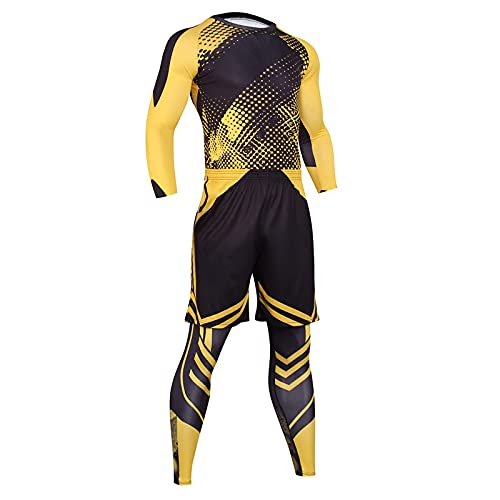 BIBOKAOKE Tuta da jogging da uomo, tuta da allenamento, con stampa mimetica, 3 pezzi, pantaloncini a maniche lunghe + pantaloni, set sportivo elastico, abbigliamento sportivo, Giallo 9., L