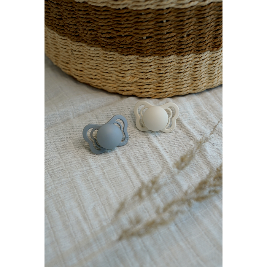 La parte aspirante del succhietto BIBS Couture ha una forma adatta alla mascella e ricorda ai bambini la sensazione che si prova durante l'allattamento. La tettarella si adatta perfettamente alla bocca del bambino, riducendo la pressione sui denti e sulla mascella. La S child del manichino è morbida, arrotondata e lascia abbastanza spazio per il naso. I grandi fori per l'aria nella S child assicurano una buona circolazione dell'aria e quindi proteggono la pelle sensibile del bambino nella zona della bocca. Oltre alla funzionalità e alla sicurezza dei manichini, la loro estetica Design è anche incantevole. Dettagli del prodotto Per 6-36 mesi Nei colori Cloud e Steel Blue Set di 4 Prodotto in Danimarca Alta qualità Materiale del prodotto La parte assorbente è fatta di silicone, un materiale allergico che è trasparente e neutro nell'odore e nel sapore. La parte assorbente mantiene la sua forma in modo permanente 100% senza PVC, BPA e ammorbidenti