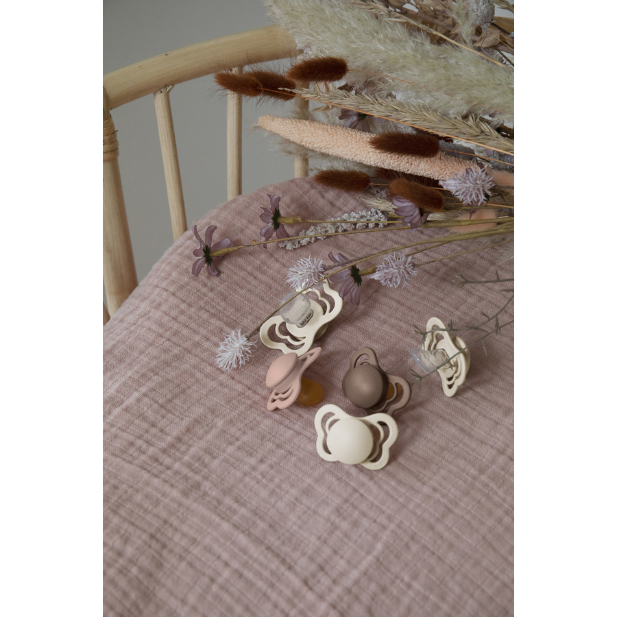 La parte aspirante del succhietto BIBS Couture ha una forma adatta alla mascella e ricorda ai bambini la sensazione che si prova durante l'allattamento. La tettarella si adatta perfettamente alla bocca del bambino, riducendo la pressione sui denti e sulla mascella. La S child del manichino è morbida, arrotondata e lascia abbastanza spazio per il naso. I grandi fori per l'aria nella S child assicurano una buona circolazione dell'aria e quindi proteggono la pelle sensibile del bambino nella zona della bocca. Oltre alla funzionalità e alla sicurezza dei manichini, la loro estetica Design è anche incantevole. Dettagli del prodotto Per 6-36 mesi Nei colori Avorio e Blush Set di 4 Prodotto in Danimarca Alta qualità Materiale del prodotto La parte assorbente è fatta di silicone, un materiale allergico che è trasparente e neutro nell'odore e nel sapore. La parte assorbente mantiene la sua forma in modo permanente 100% senza PVC, BPA e ammorbidenti