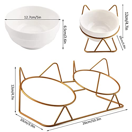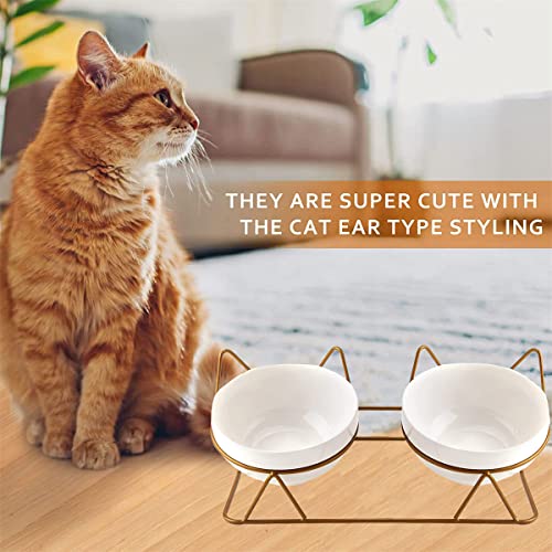 Bibykivn Ceramica Ciotole per Gatti Cani, Ciotola Cane con Supporto, Rialzate Antivomito in Ceramica per Cibo e Acqua Ciotola anticalcare per Gatto Cani Piccoli e Animali Domestici (Ciotola Doppia)