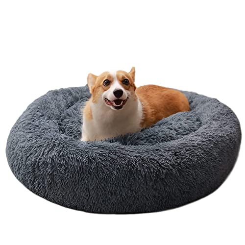 Bibykivn Letto per Cani Letto per Gatti, Cuscino per Cani Gatti Nuvola Soffice Peluche Rotondo da Ciambella per Cani di Piccola, Media e Grande Taglia, Lavabile in lavatrice (50×50CM, Grigio scuro)