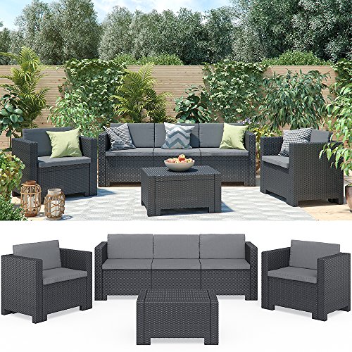 Salottino da giardino per 5 persone, design rattan, realizzato in polipropilene