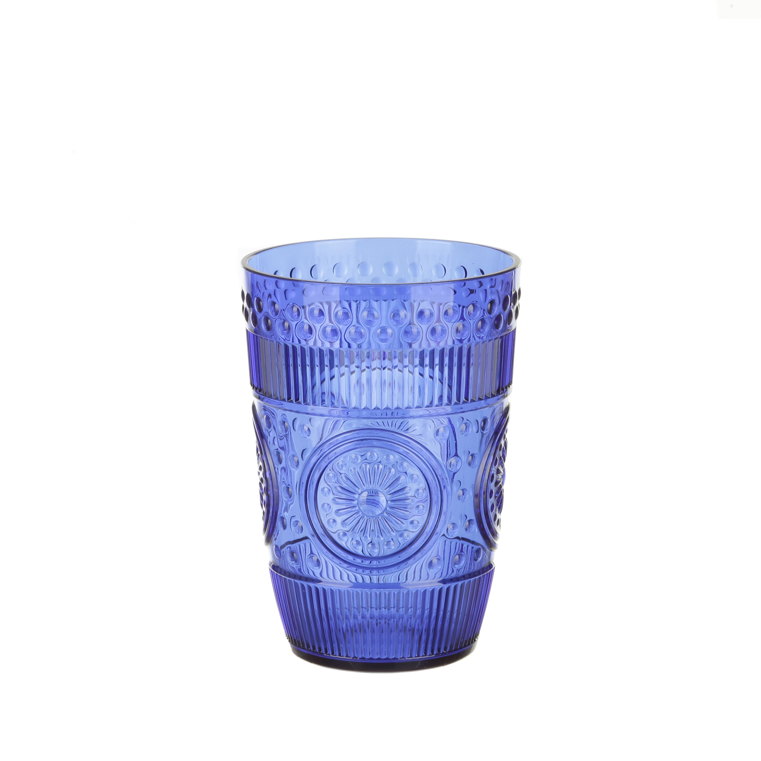 Imperial è la linea di bicchieri sfusi in plastica, finemente decorati. L'elegante sfumatura blu porterà una nota di colore sulla tua tavola di ogni giorno, gustando con stile anche un semplice bicchiere d'acqua. La composizione in plastica rende il bicchiere adatto anche all'uso esterno, per i tuoi pranzi e picnic in giardino anche con i bambini. Potrai creare un set coordinato in blu o acquistare il bicchiere sfuso in abbinamento agli altri colori della linea per personalizzare ogni posto tavola. Capacità: 430 ml. Dimensioni: diametro 8 cm, altezza 12 cm.