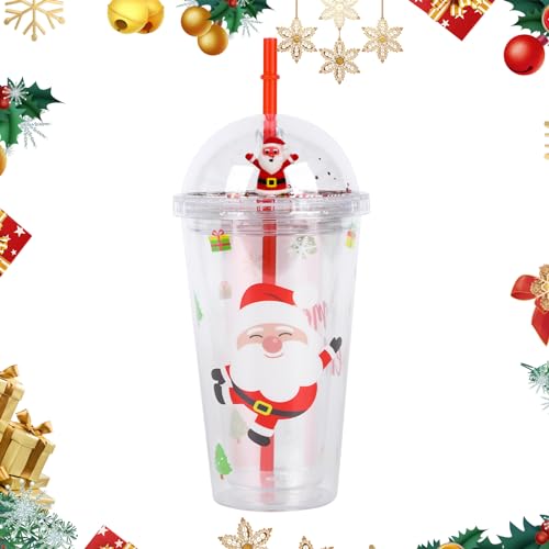 Bicchiere d'acqua Natalizio Borraccia Riutilizzabile Senza BPA Tazza Glitterata a Doppia Parete con Cannuccia e Coperchio Albero di Natale di Babbo Natale per Natale di Festa Regalo 450 ml (B)