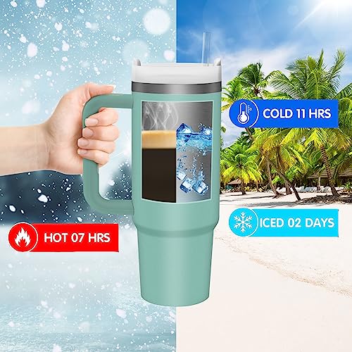 Bicchiere da 30 once con cannuccia e coperchio, bottiglia d'acqua da viaggio per caffè freddo isolata riutilizzabile in acciaio inossidabile, tazza auto bevande calde e fredde con manico(Verde)