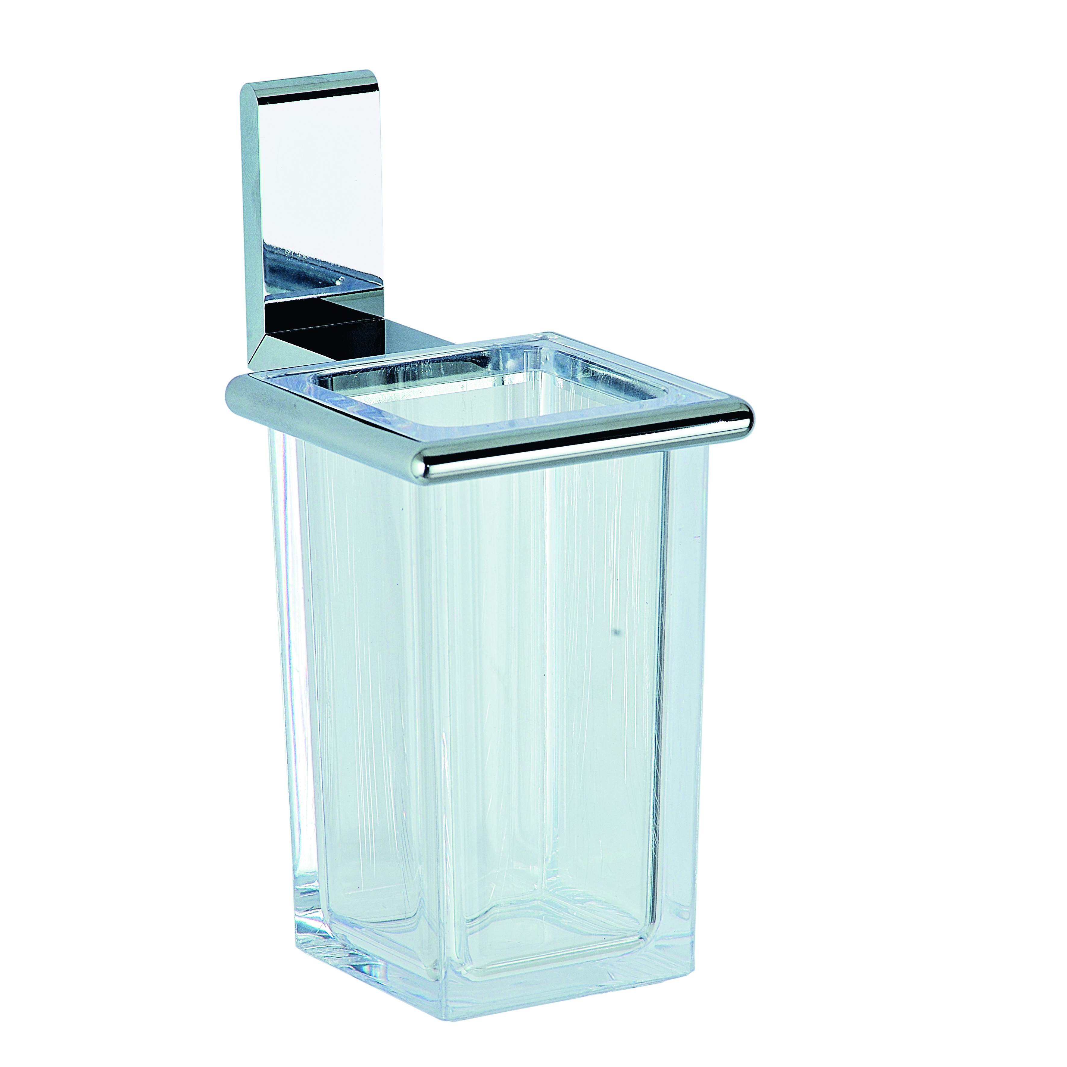 Bicchiere in plastica con supporto in zama, L 7,3 x H 15,8 x P 10,5 cm. Fissaggio a tassello. Elegante e raffinata.