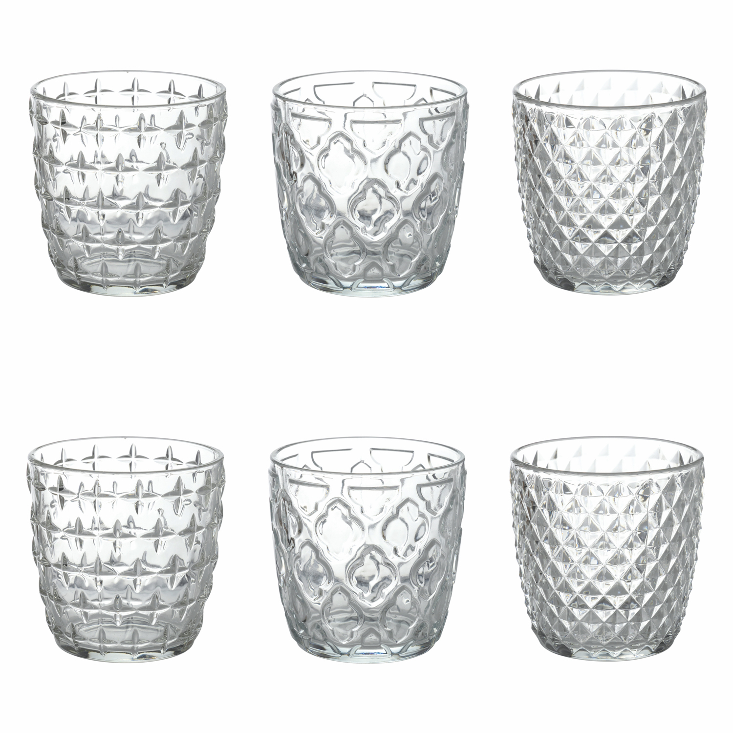 Il set di bicchieri Diversity aggiunge varietà alla tua tavola. Realizzati in vetro trasparente e adornati con 6 decori rilevati diversi, questi bicchieri sono tanto belli quanto funzionali. Perfetti per ogni occasione, sono lavabili in lavastoviglie per la massima comodità. Rinfresca il tuo spazio con stile e versatilità.