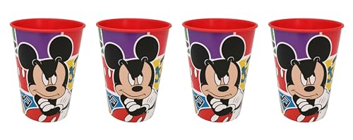 4 bicchieri per bambini, 260 ml, motivo a scelta tra: Spiderman - Batman - Thomas - Topolino / bicchieri in plastica senza BPA, regalo per ragazzi (Topolino 02)
