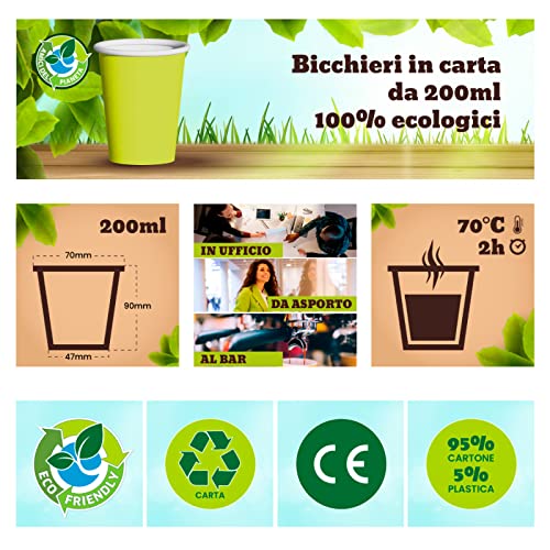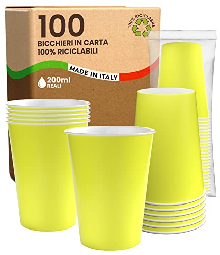 100 Bicchieri in Carta 200ml Ecologici Biodegradabili Monouso Made in Italy Asporto Bevande Calde Acqua Colorati GIALLI - Prodotto e confezionato in Italia