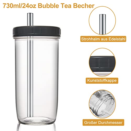 Bicchieri per frullati, confezione da 4 barattoli da 710 ml con coperchi e cannucce, tazza Boba, tazza da tè a bolle, tazza da caffè freddo, bicchiere in vetro con cannuccia e coperchio