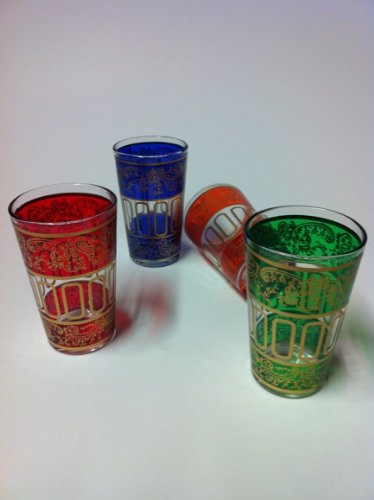 Tè orientale marocchino come set da tè di 6 pacchetti, in 6 colori con ornamenti in filigrana araba d' oro, tazza da tè marocchina per servire il vostro tè orientale.