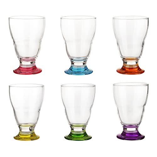 Set composto da 6 bicchieri in vetro trasparente con fondo colorato, ideali per qualsiasi tipo di bevanda.