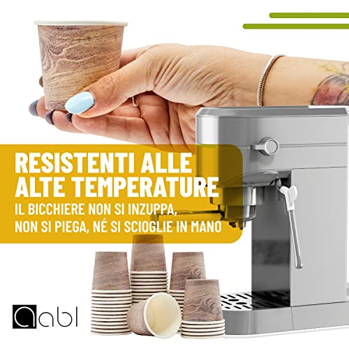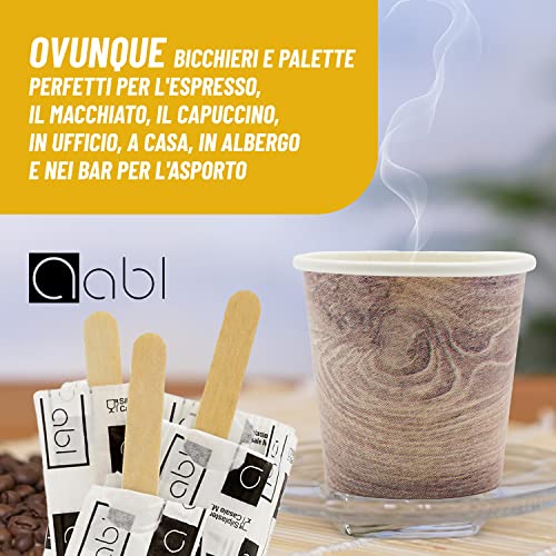 ABL Bicchierini Caffe Biodegradabili e Palette in Legno - Scatola di Bicchieri Monouso Compostabili, 100Pezzi, 100ml