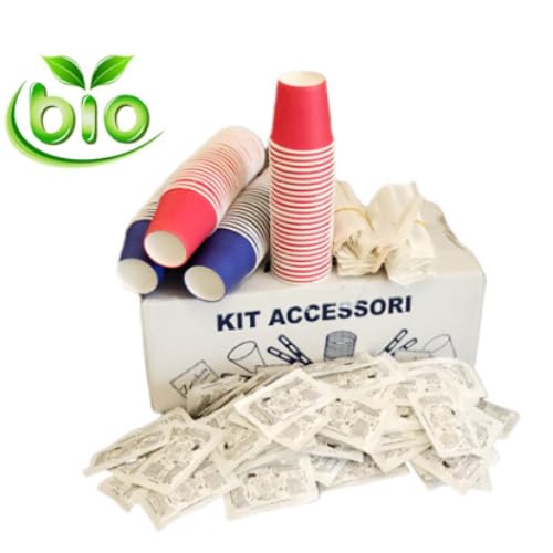 600 Pz Bicchierini Caffe Carta Espresso Tazzine Biodegradabili 75ml + 600 Pz Palettine in Legno Monouso + 600 Pz Bustine di Zucchero Extra Fine di qualità - Kit Accessori per Caffe