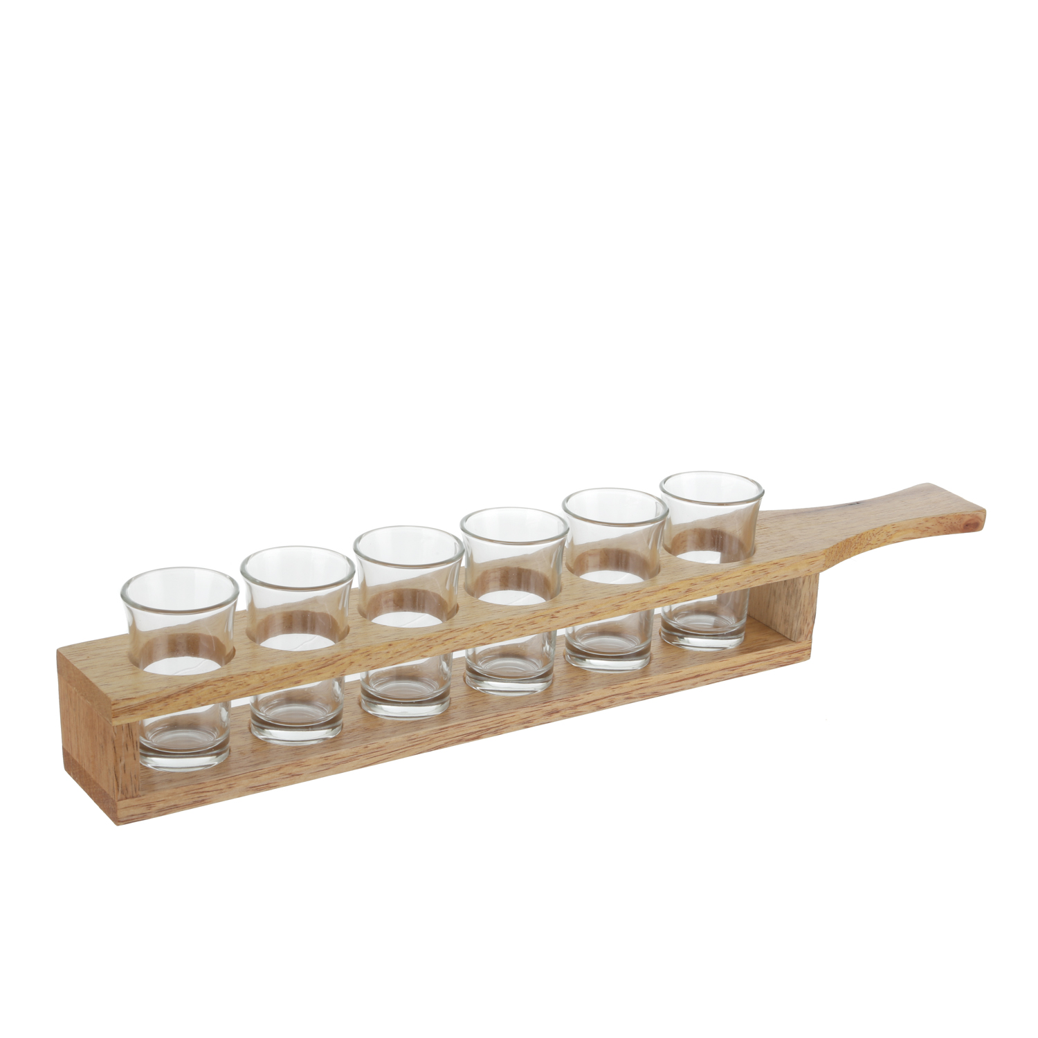 Il set di 6 bicchieri da shot in vetro con vassoio Victor è l'accessorio ideale per le tue serate con amici e familiari. Realizzato in legno di alta qualità, il vassoio presenta un design elegante e funzionale, dove ogni bicchiere da shot trova il suo spazio. Il manico ergonomico del vassoio permette di servire i drink con stile e facilità, rendendo ogni occasione speciale. Perfetto per feste, eventi o semplici serate a casa, il set Victor è un'aggiunta sofisticata e pratica al tuo arsenale di accessori da bar.