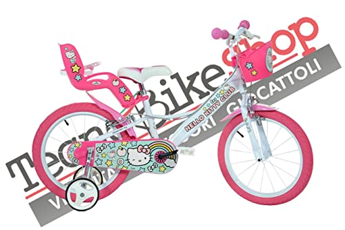 Bici per Bambina Bicicletta Dino Bikes Hello Kitty Taglia 12" - 14" - 16" (Cerchio 16 Pollici)