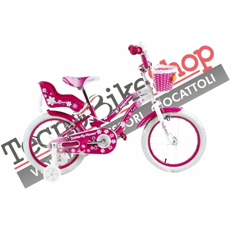 Bici Butterfly 16 La bicicletta BUTTERFLY è caratterizzata da un look veramente femminile e raffinato colorata sui toni che vanno dal bianco al rosa al fucsia ed è dotata di un delizioso cestino in vimini rosa con applicazioni floreali che lo rendono ancora più bello. Inoltre ha un portapacchi con cuscino posteriore il campanello ed il cavalletto. Telaio in acciaio e freni V-Brake. Abbellita da decori di fiori e farfalle sarà perfetta per le ragazzine che amano pedalare in compagnia delle amiche e passeggiare all'aria aperta. CARATTERISTICHE: TELAIO Acciaio FORCELLA Acciaio SERIE STERZO Acciaio FRENI Caliper ACCESSORI Cestino Porta Bambole rotelle MOVIMENTO CENTRALE con sfere MISURA 16 BAMBINA BAMBINA ETA' 5-8 ANNI
