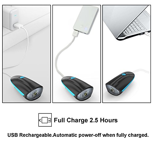 LED bici luce frontale, Bbtops USB Addebitabile faro della bici con clacson per bicicletta, luce 2-in-1 campanello per bicicletta con 3 modalità di luce regolabile, facile da installare ciclismo luci per mountain strade e notte, blue ...