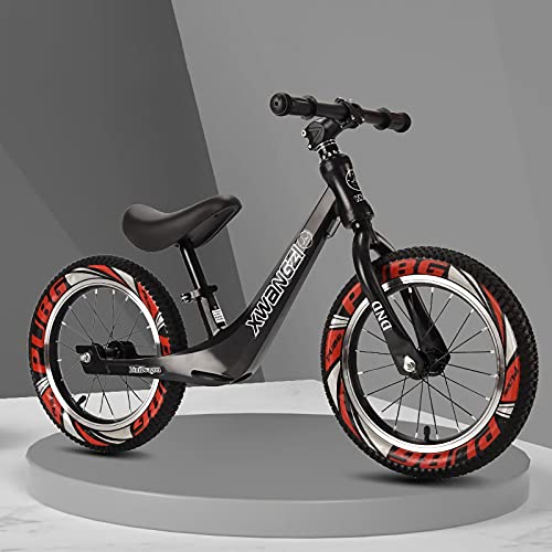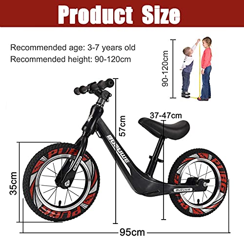 Bicicletta Bambini Senza Pedali 14" Bici Senza Pedali Balance Bike per l'Equilibrio con Sellino Regolabili Telaio in Lega Di Magnesio bici per bambini, Max 35 Kg, 3-7 Anni,B black