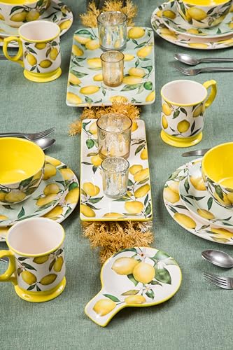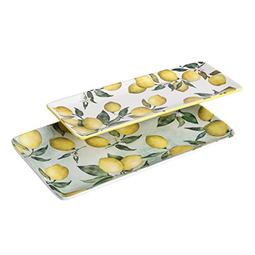 Bico Piatto da portata rettangolare in ceramica da 35 cm, Lemon Dreams, set di 2, per servire insalata, pasta, formaggio, prosciutto, antipasto, microonde e lavastoviglie