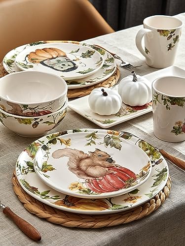 Bico Woodland Critters Piatti da Insalata in Ceramica, 22 cm, Set da 4, per Insalata, antipasti, microonde e lavastoviglie