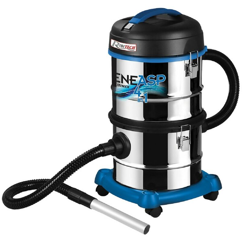 A quattro funzioni: aspirazione ceneri fredde, acqua, polveri, modalitã soffiante. completo di accessori per cenere tubo flessibile di aspirazione in metallo da 1,10 mt, lancia da 20 cm, 1 tubo flessibile di collegamento flessibile, filtro hepa. accessor