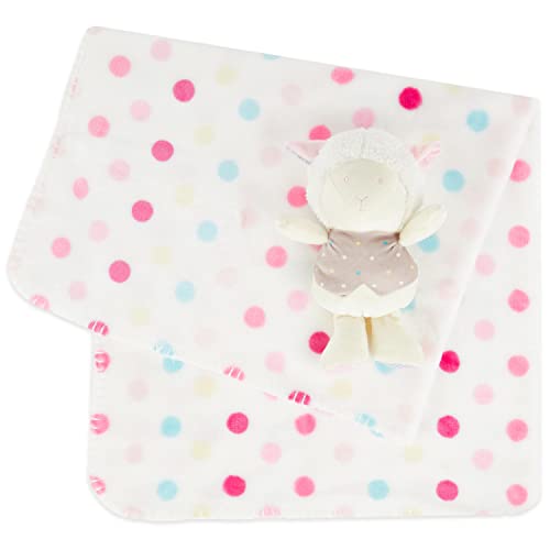 Bieco 04004113 Bambino Cuddle Set con coperta di sicurezza e le pecore peluche, Schmuseset con una coperta bianca con i puntini rosa e peluche pecore per i bambini da 3 m +, rosa