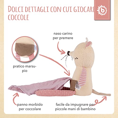 Imparare e giocare: il dolce topolino offre fantastiche possibilità di afferrare, sentire e scoprire grazie al suo corpo morbido, al panno e alle diverse strutture in tessuto