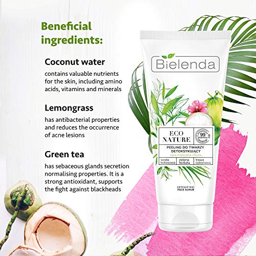Bielenda Eco Nature - Acqua di cocco + Tè verde citronella - Scrub viso disintossicante, 150 G