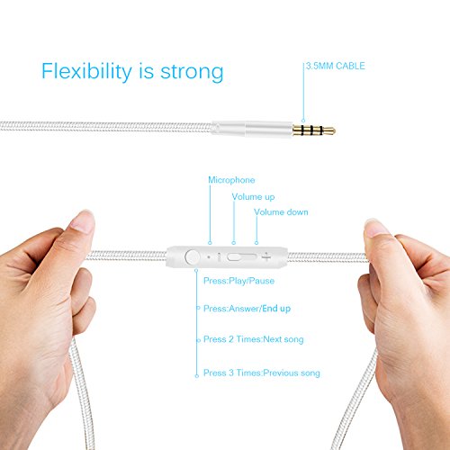Microfono integrato con pulsante di controllo per chiamate telefoniche e per far partire o mettere in pausa una canzone con un solo gesto. Adatto a tutti i dispositivi dotati di jack 3,5 mm, auricolari per tutti gli smartphone Android, iPhone, PC, laptop, MP3/MP4, tablet.