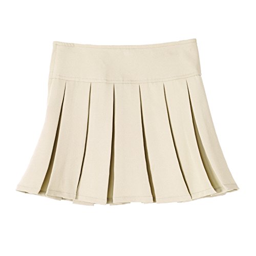 Bienzoe Ragazze Elastico Pieghe Teflon Uniforme Scolastica Danza Gonna Cachi 8