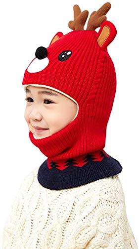 BIFADA Cappelli Invernali Bambini Sciarpa Earflap Maschera Cappello Peluche Cranio Beanie per Ragazzi Ragazze 1-5 Anni Cervo rosso 1-5 anni