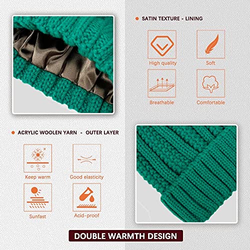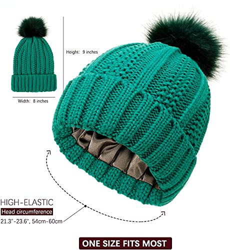 BIFADA Cappello invernale da donna con filo spesso lavorato a maglia, in finta pelliccia, foderato in pile, Verde menta., Taglia unica