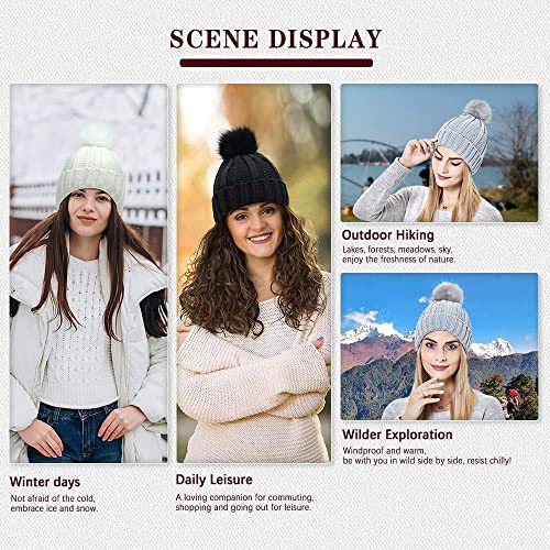 Caldo e alla moda: il design a doppio strato viene applicato al cappello del berretto, il morbido rivestimento in pile ti mantiene al caldo meglio. Nella parte superiore del cappuccio attaccato una palla di pelliccia carina, la pelliccia è ricca e liscia, rendere il berretto più bello e alla moda.