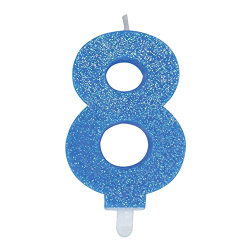 Big-party Candeline Numerali Glitter Vari Colori h 15 cm (8, Blu)