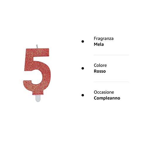 Big-party Candeline Numerali Glitter Vari Colori h 15 cm (5, Rosso)