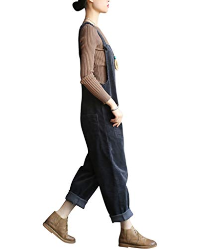 Bigassets Donna Cotone Tute Velluto a Coste Playsuit Pantaloni Salopette con Tasche Grey