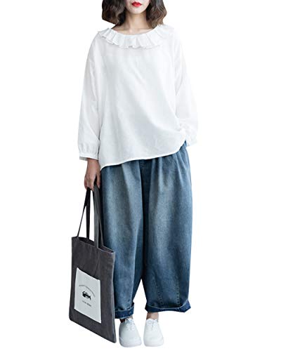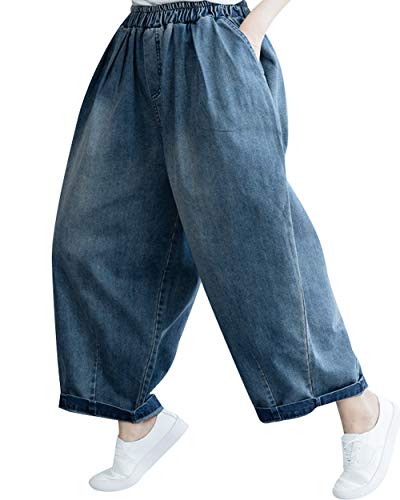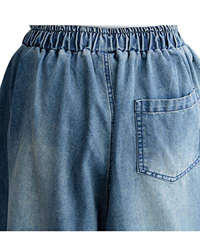 Bigassets Donna Vita Elastica Jeans Pantaloni Larghi con Tasche Style 1 Blue