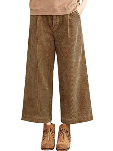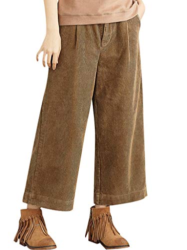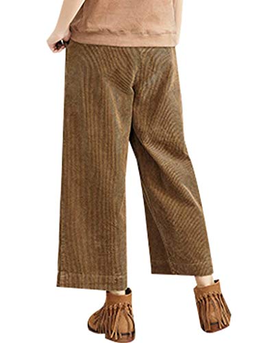 Bigassets Donna Vita Elastica Velluto a Coste Pantaloni alla Caviglia Pantaloni a Gamba Larga Coffee L