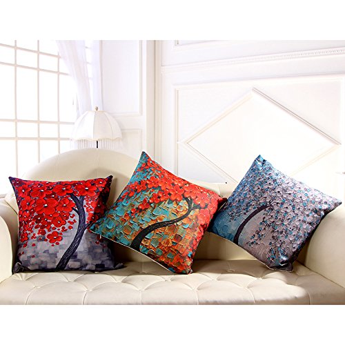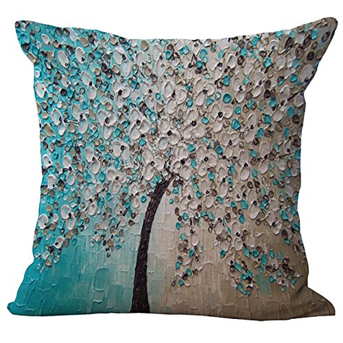 -Questo cuscino è realizzato in morbido poliestere (lino) per una sensazione molto confortevole. Stile vintage0 dipinto ad olio design di motivo alberi e fiori tridimensionali, unico e bellissimo. Questa federa aggiunge un tocco di lusso all'arredamento della casa, cerniera invisibile cuciture strette, stampa impeccabile, cerniera nascosta.