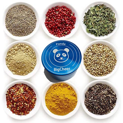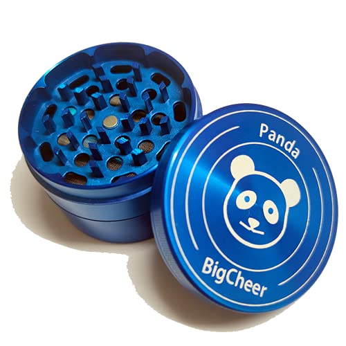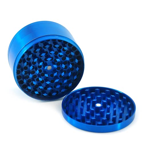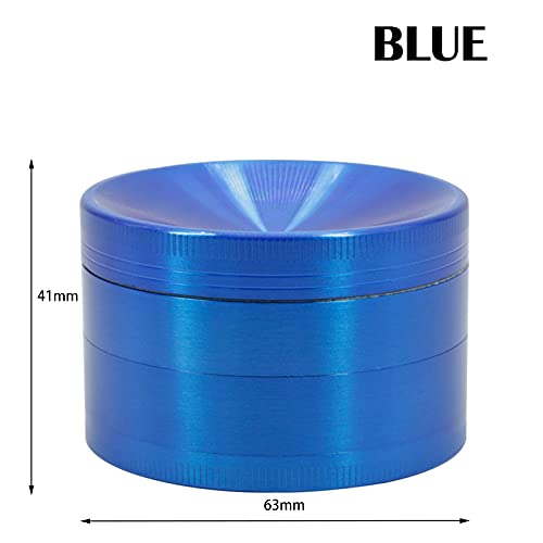 BigCheer Macinino per erbe aromatiche in alluminio 4 pezzi Herb Grinder con raschietto per polline, pennello e bocchino,Ø 63 mm (Blu)