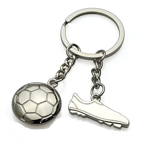 BigCheer Portachiavi da calcio per ragazzi scarpe da calcio d'argento e palla portachiavi novità metallo portachiavi (scarpe e calcio), argento, 30 x 11 x 3 mm