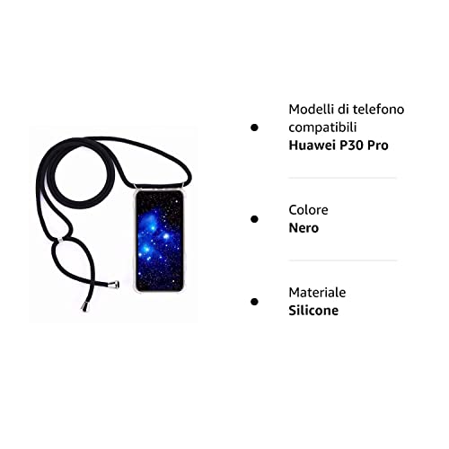 Bigcousin Custodia con Cordino Compatibile con Huawei P30 PRO,Case in Trasparente TPU,Case Angoli Rinforzati- Nero