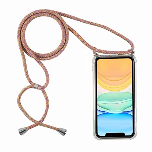 Bigcousin Custodia con Cordino Compatibile con iPhone 11 PRO Max 6.5,Case in Trasparente TPU,Cover con Cordoncino da Indossare- Arcobaleno Giallo
