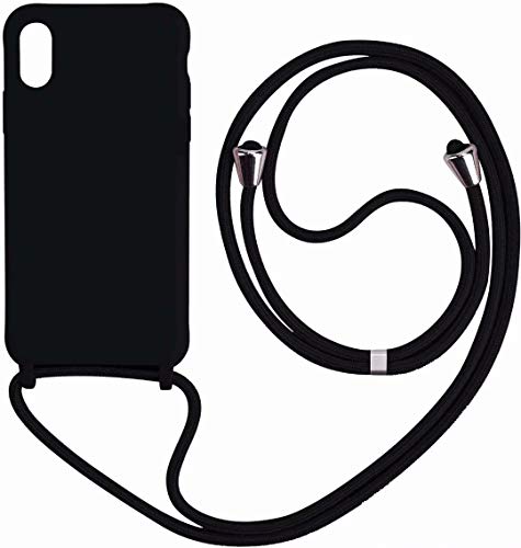 Bigcousin Custodia con Cordino Compatibile con iPhone XR,Cordino Laccio Morbido Silicone Necklace Bumper Case- Nero