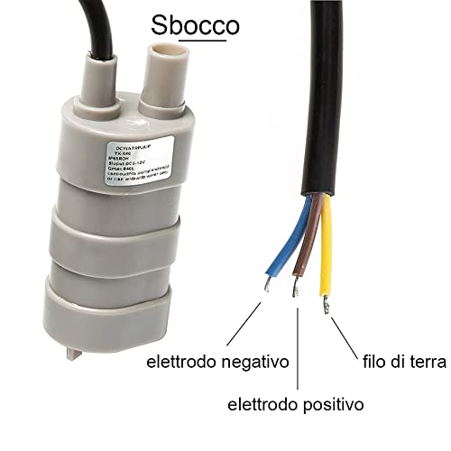 Mini pompa dellacqua: piccola pompa dellacqua 98 mm (altezza) * 38 mm (diametro) Diametro esterno delluscita dellacqua: 12 mm Diametro interno delluscita dellacqua: 9,7 mm, leggera, facile da trasportare, non occupa troppo spazio,pompa ad immersione.
