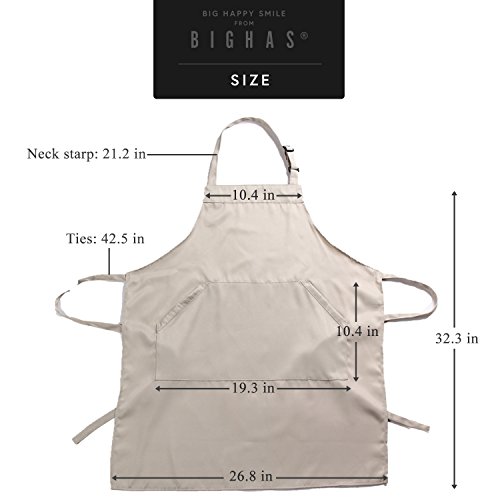 BIGHAS Grembiule regolabile con tasca extra lungo cravatta per donne, uomini, cucina, casa, cucina, in cotone/poliestere, Beige, 27W×32L